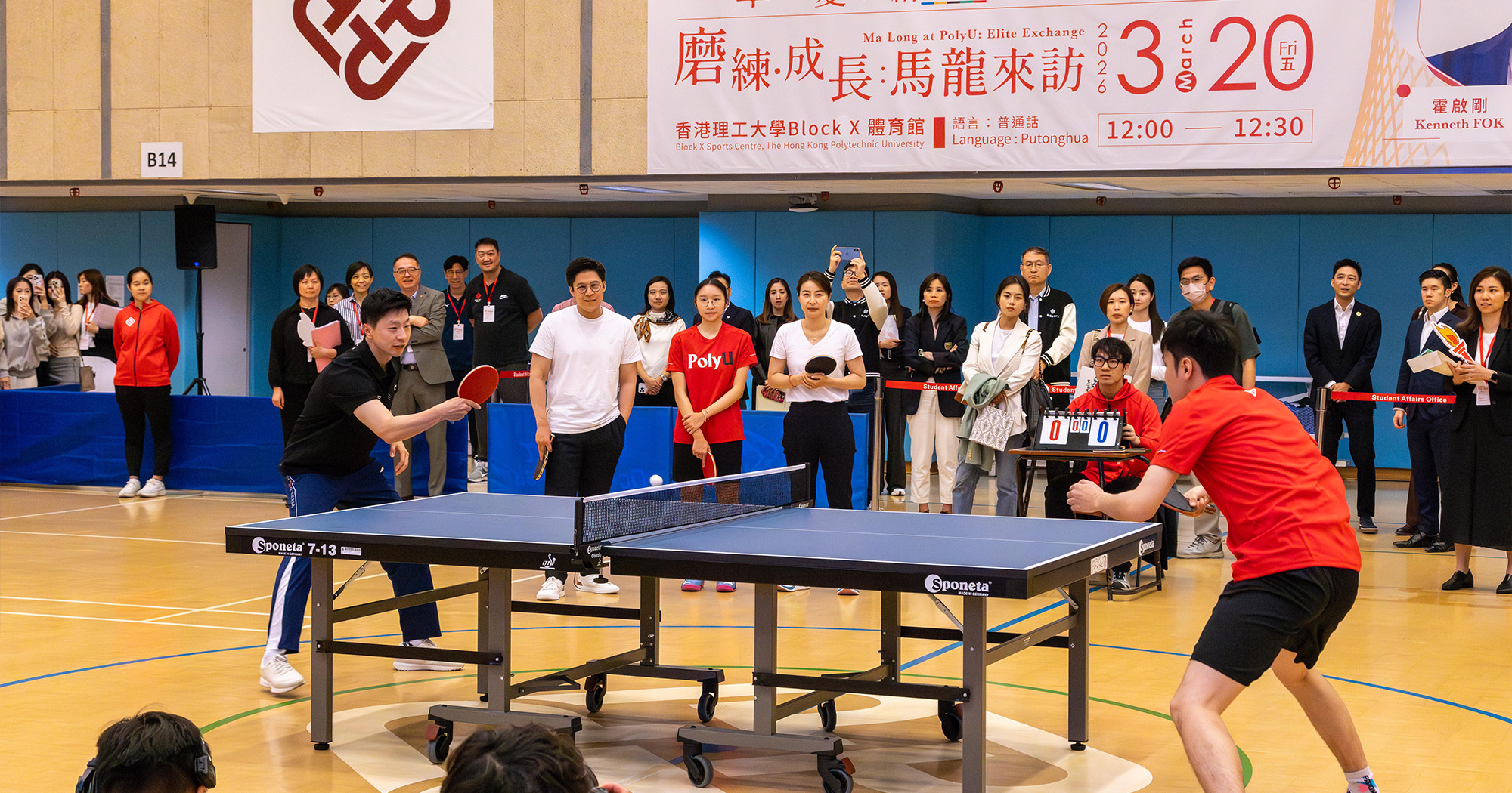 Following the forum, the excitement continued at Block X Sports Centre, where Mr Ma Long took part in an interactive table tennis demonstration titled “Ma Long at PolyU: Elite Exchange.” Widely regarded internationally as one of the best players in table tennis, Mr Ma Long captivated the audience with his unparalleled precision, speed and signature technique. Throughout the demonstration and interactive game with members of the PolyU Table Tennis team, he displayed the mastery that earned him multiple Olympic titles, leaving fans in awe of his rhythmic footwork and powerful strokes.