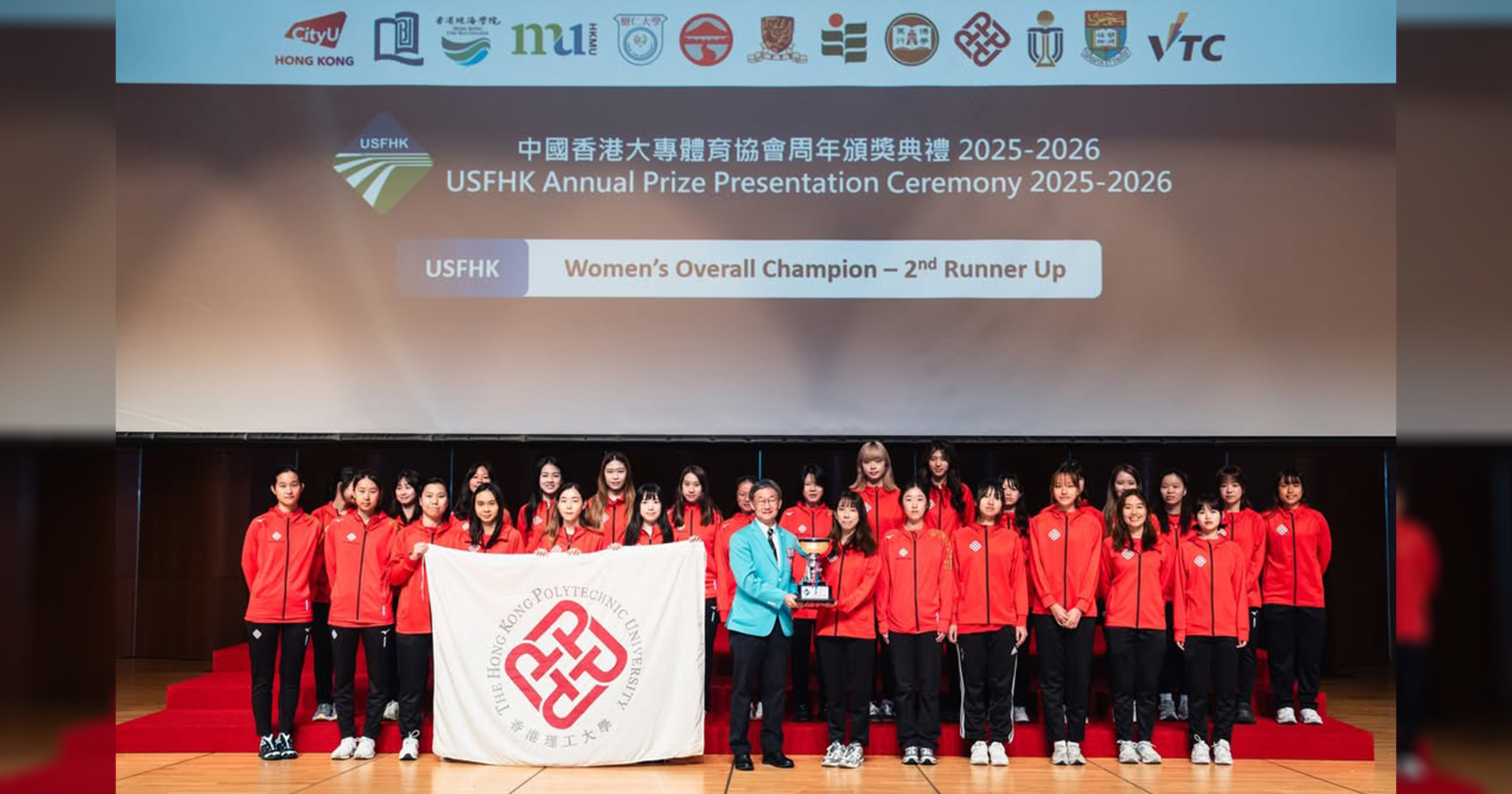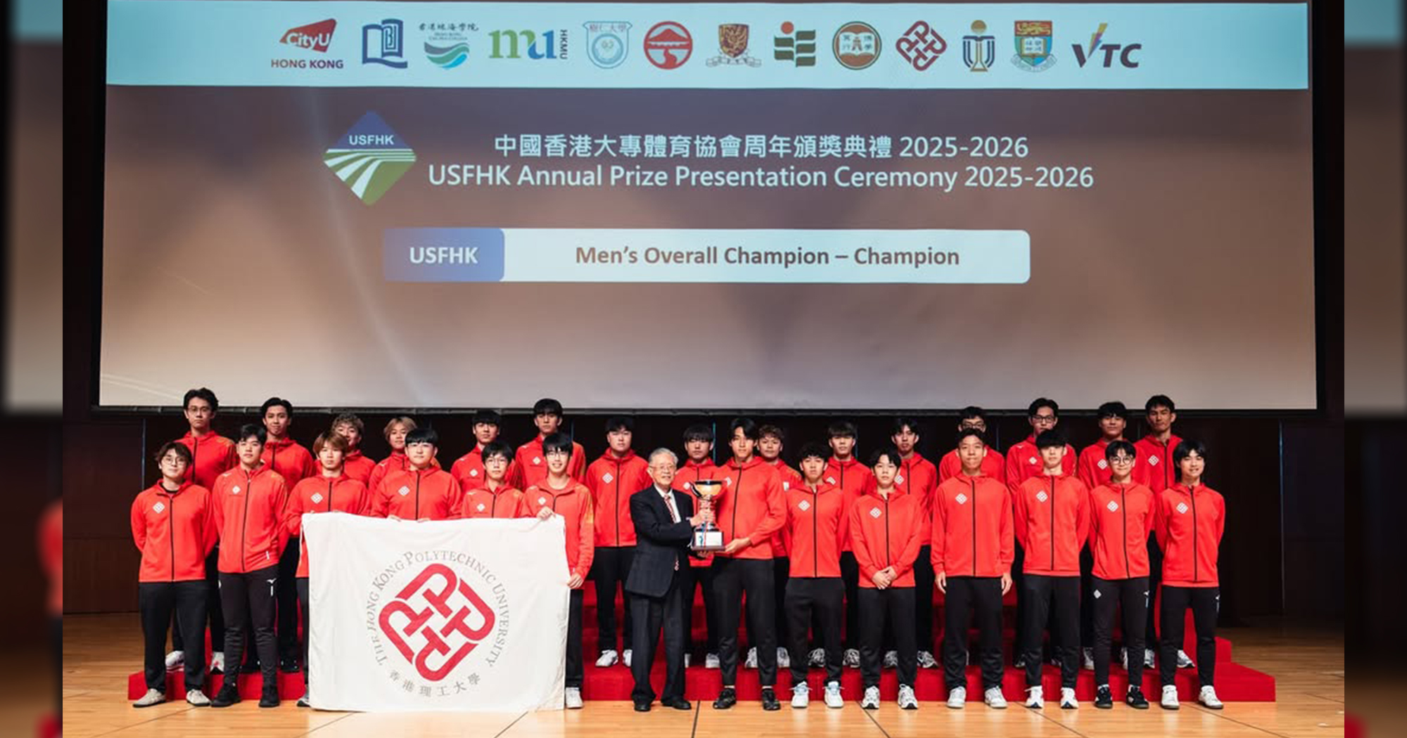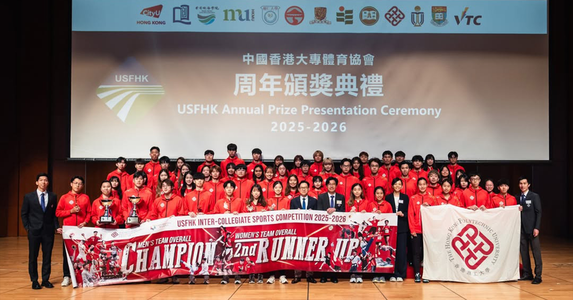 PolyU athletes shone brightly in the 2025/26 Inter-collegiate Competition organised by The University Sports Federation of Hong Kong (USFHK), achieving remarkable results by securing the Yearly Men’s Overall Championship and the Women’s Overall Second Runner-up!