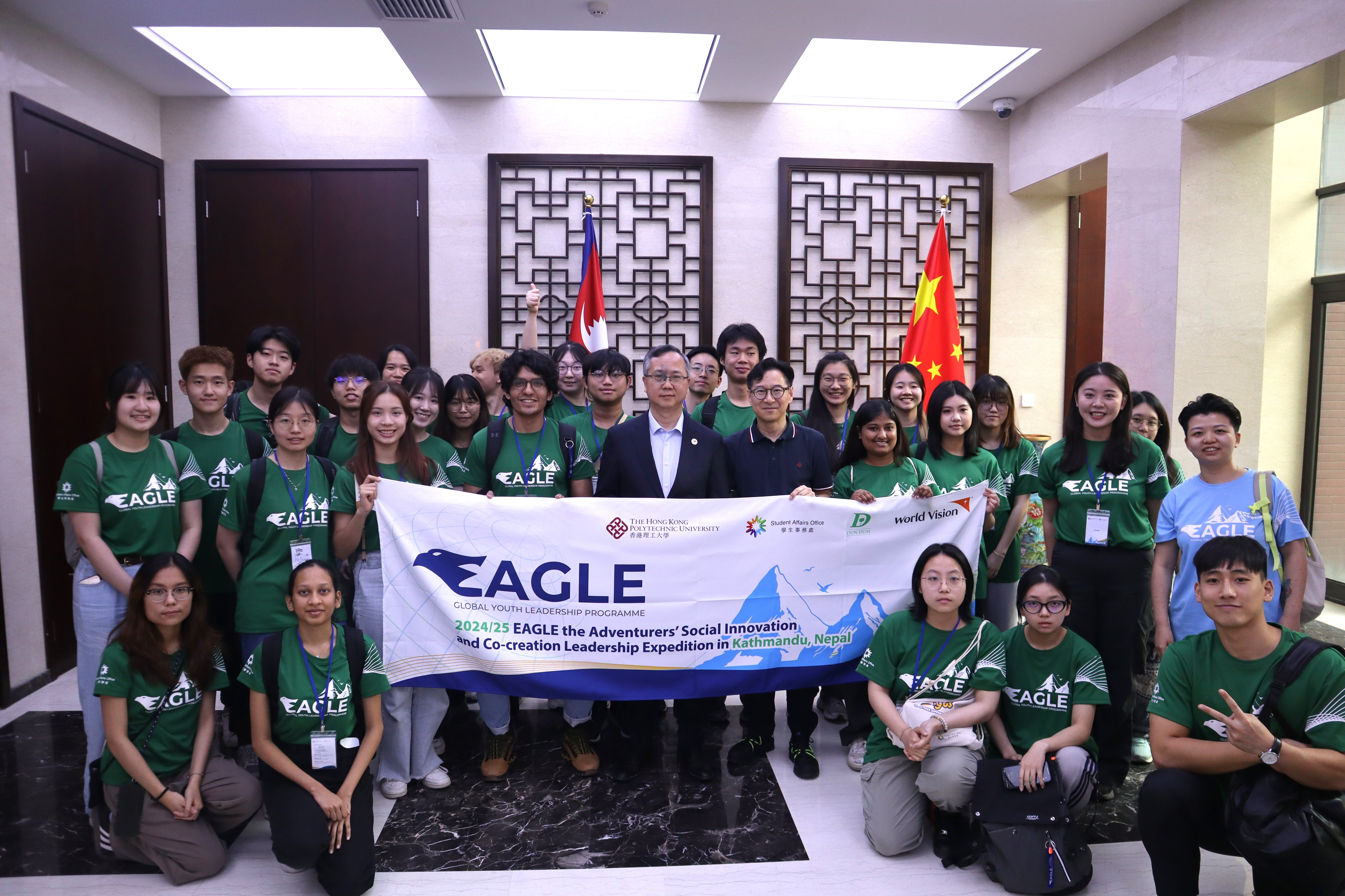 27 students from EAGLE the Adventurers experienced further leadership advancement training and, in May 2025, co-created several tech-driven social innovation projects with the Nepali community in Kathmandu, which aimed at tackling sustainability challenges and resolving hygiene and health-related problems in the context of Nepal’s underdeveloped status. Throughout their journey, the PolyU students demonstrated advanced leadership, strong personal growth and impressive cross-cultural exchange skills. The delegation also visited the United Nations House and the Embassy of the PRC in Nepal to deepen their understanding in SDGs and Belt and Road initiatives in action.