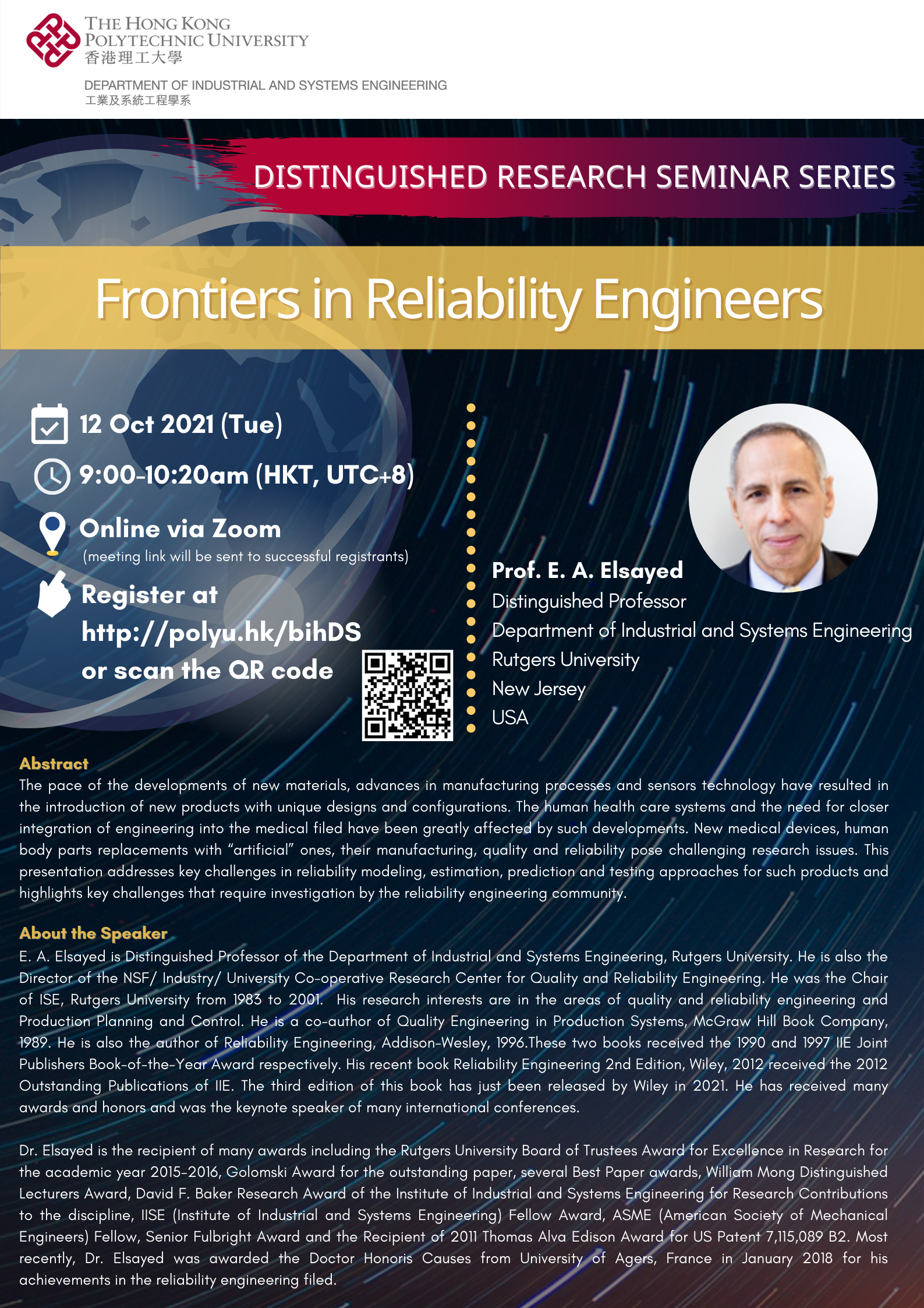 Distinguished Research Seminar Series - "Frontiers in Reliability Engineers“