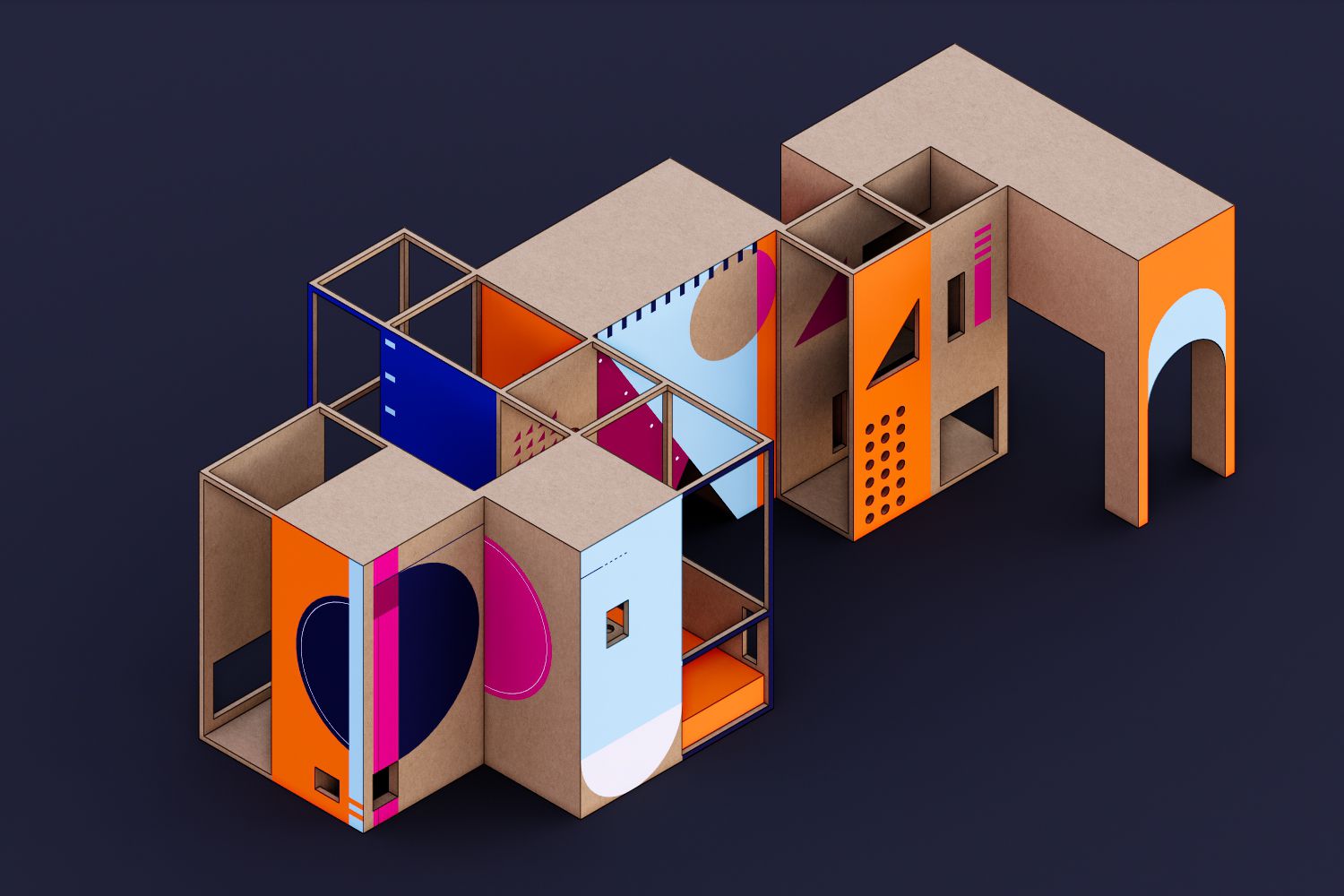 设计以“Fill in the ___(blank)”幻化成“Feel in the ____ (Library)”的“触”、“动”、“喜”和“阅”为概念,以建馆二十年的香港中央图书馆建筑本体为主角,参考大楼中象征“知识之门”的拱门,拼凑十二个象征“天圆地方”和“知识累积成塔”的几何图形。