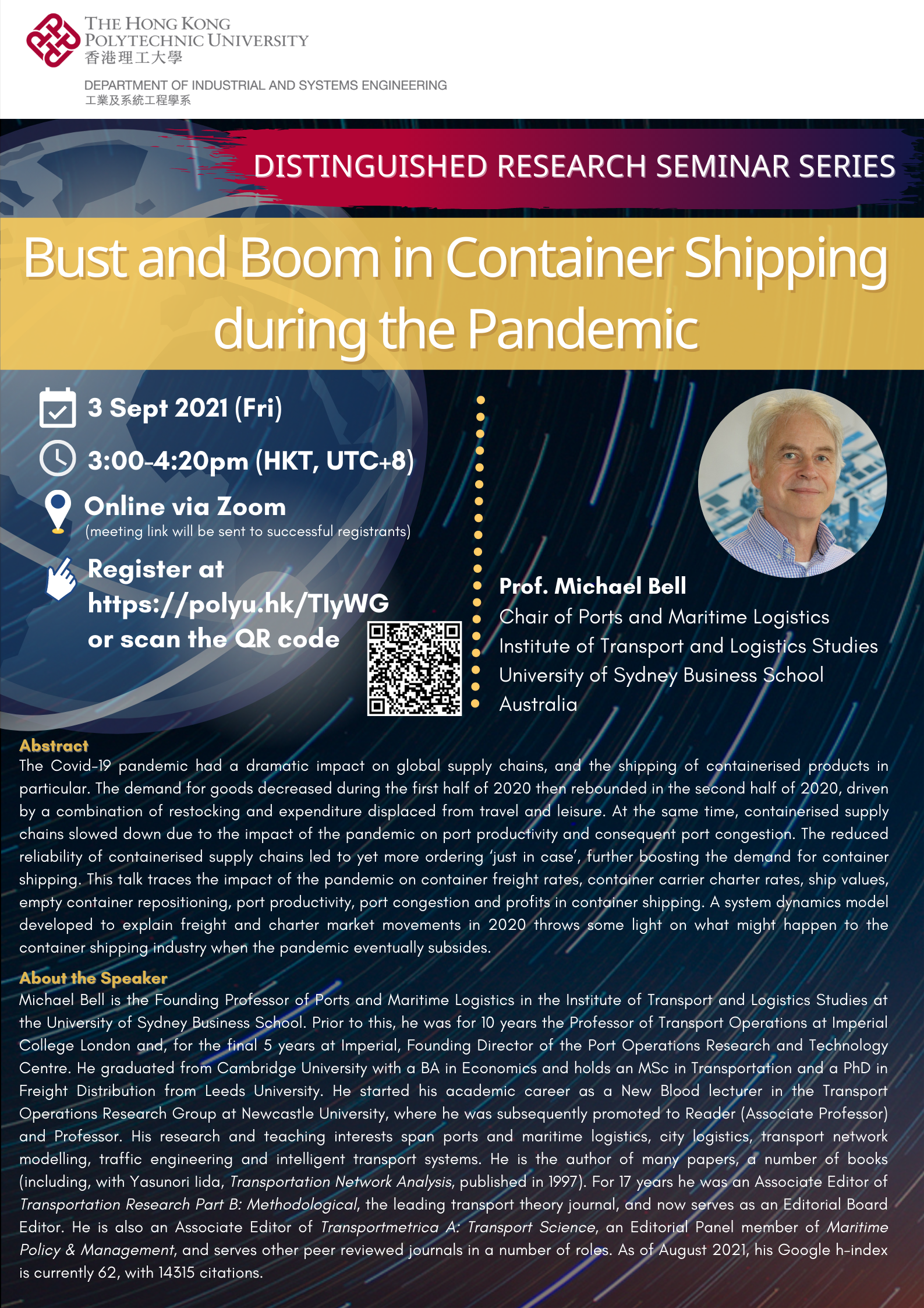 Distinguished Research Seminar Series - "Bust and Boom in Container Shipping during the Pandemic"