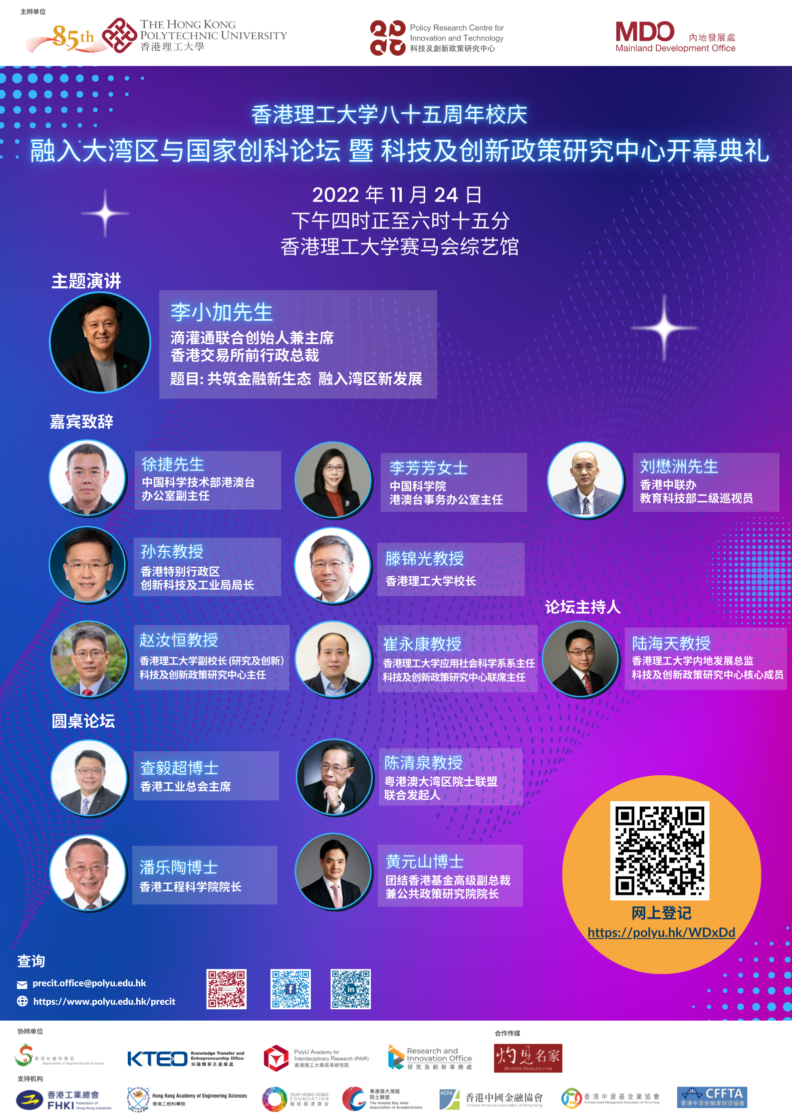 香港理工大学八十五周年校庆 - 融入大湾区与国家创科论坛 暨 科技及创新政策研究中心开幕典礼