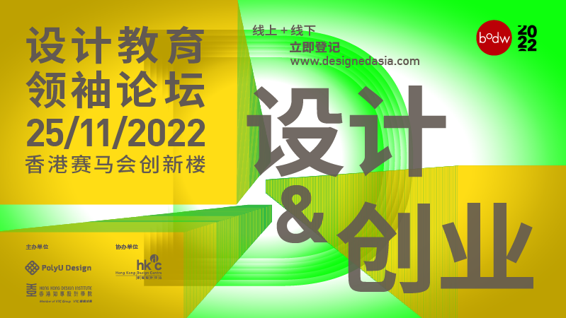 2022设计教育领袖论坛作为设计营商周计划的并行活动,由香港理工大学设计学院、香港知专设计学院以及香港设计中心合办。2022年的主题是「设计与创业」。此全日论坛将云集业界和学术界的知名人士进行高层对话与讨论,为共同塑造设计和创业之未来提供富有洞察之见解。