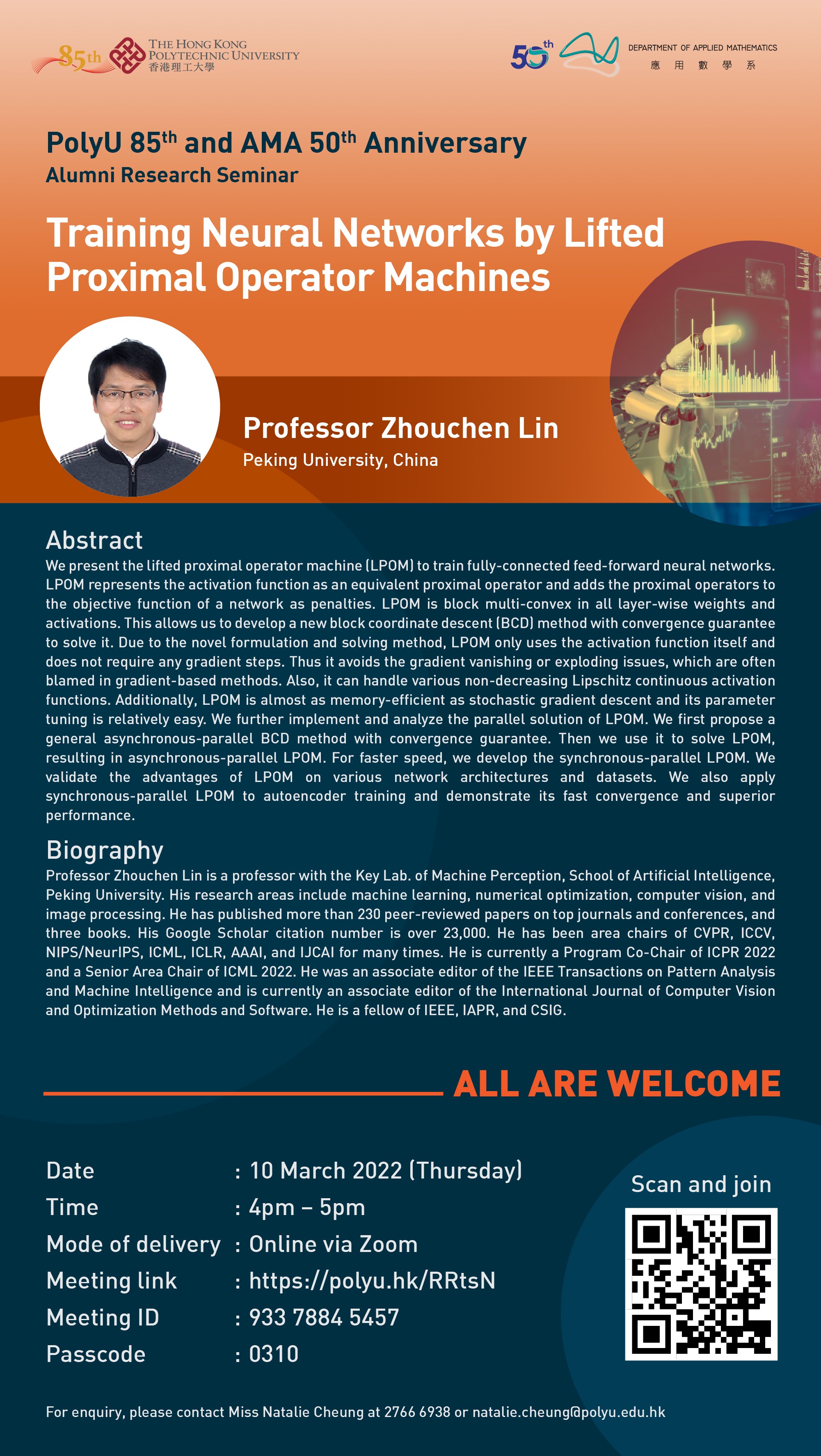 PolyU85th / AMA50th Anniversary Alumni Research Seminar: Prof. Zhouchen Lin, Peking University, China (只有英文版本)
