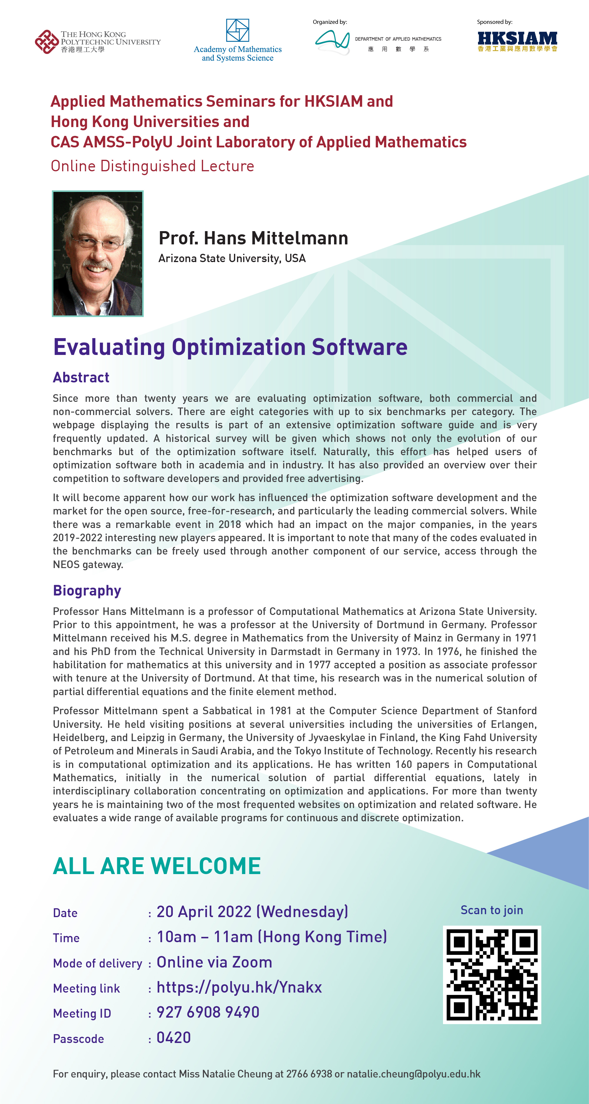 Applied Mathematics Seminars for HKSIAM and HK Universities and CAS AMSS-PolyU Joint Lab Online Distinguished Lecture: Evaluating Optimization Software (只有英文版本)