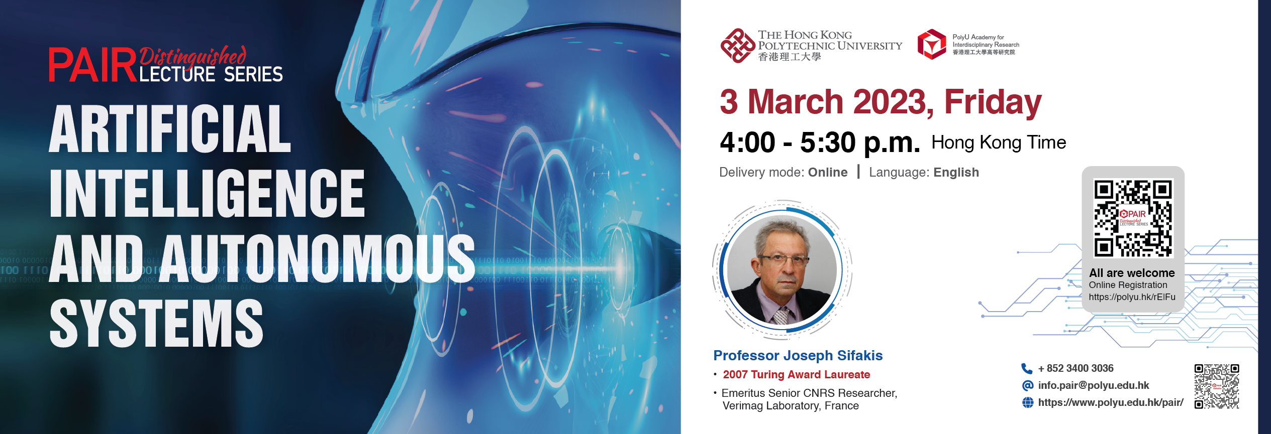 圖靈獎得主將於三月三日線上主講PAIR傑出講座 香港理工大學高等研究院誠邀大家參加於二零二三年三月三日(星期五)舉行的PAIR傑出講座。 是次講題為「人工智能與自主系統」,並由2007年圖靈獎得主、法國Verimag實驗室法國國家科學研究中心榮休高級研究員約瑟夫.斯發基斯教授主講。 於本次講座中,斯發基斯教授將討論一些用以比較人類和人工智慧的現有準則標準,並展示了人類科學知識與人工神經網絡知識之間的一些顯著差異。自主是邁向AGI的重要一步。斯發基斯教授將說明自主系統與人類常識推理心智的關鍵性區別,並提出了自主系統應該具備的特徵。他亦將會提出AGI的發展方向和挑戰,其中包括,為系統工程和科學知識奠定新的基礎,以及探討人類智慧蘊藏著的身心現象。 萬勿錯過向傑出學者學習的機會!