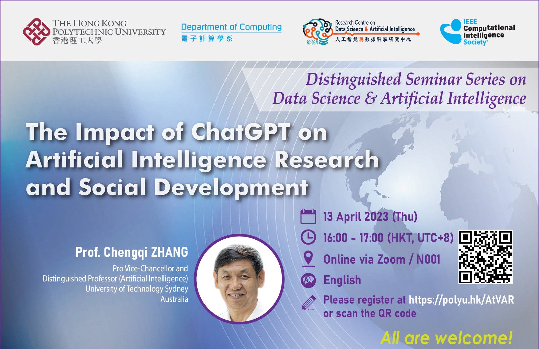 Distinguished Seminar Series on Data Science & Artificial Intelligence – 'The Impact of ChatGPT on Artificial Intelligence Research and Social Development' (只有英文版本)