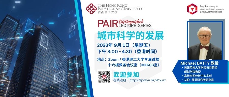 Michael Batty教授作为全球最广获征引城市规划学者之一,其著作、广泛研究和全球网路参与为城市设计和规划以及相关技术开发作出了莫大贡献。也于其领域的卓越成就备受国家及国际肯定,他曾获多项奖项及院士殊荣,其中包括2013年瓦特林.路德国际地理学奖(又称「地理学诺贝尔奖」)。