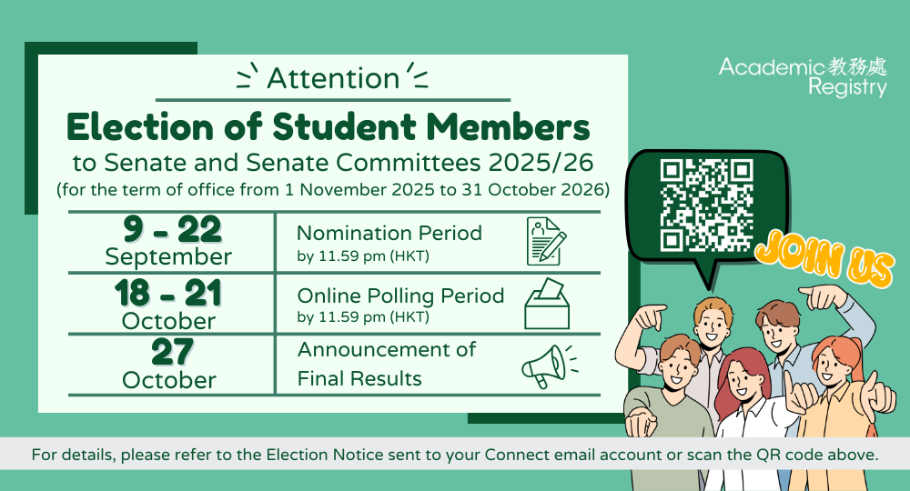Election of Student Members to Senate and Senate Committees 2025/26 - Nomination Period (只有英文版本)