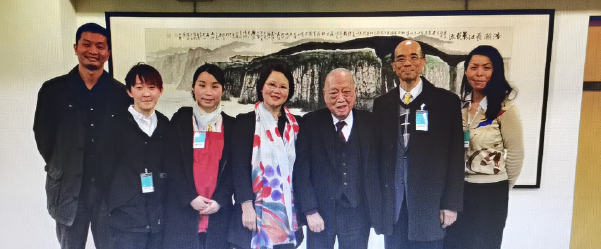 符教授的硕士及博士学生周凤鸣 (右) 向教授致送题为「师道如药、润物无声、和而不同、荣神益人」的艺术品,以感谢符教授二十年来的教诲。