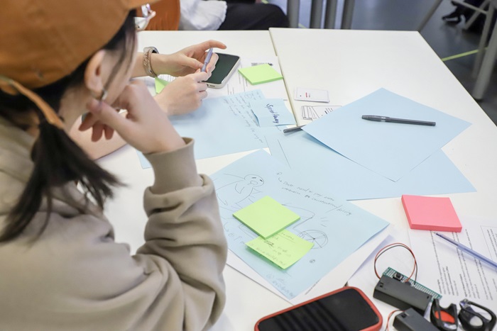 工作坊涉及多方面的練習和活動,包括 「身體風暴」、「用戶旅程圖 」和 「設計評估」。從頭腦風暴到展示身體風暴的成果,學生們全身心地投入到思考過程中。