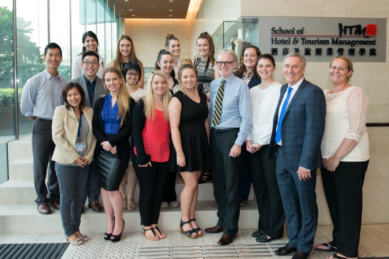 Led by Mr David Arraya, Hotel Manager of EAST, Hong Kong, an eight-member delegation visited the SHTM. Other members of the delegation included Mr Aldo Tsang, Assistant Director of Guest Experience; Mr Denny Kwok, Housekeeping Supervisor; Mr Linus Cheng, Guest Experience Manager; Mr Peter Murray, Restaurant Manager, Sugar; Mr Larry Tsang, Restaurant Manager, Feast; Ms Eunice Hon, Sales Coordinator; and Mr Ayden Wong, Guest Experience Host.