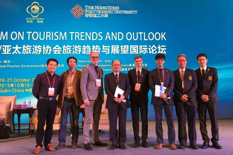 Professor Song, Professor Brian King, Dr Denis Tolkach, Dr Vincent Tung, Dr Honggen Xiao and Mr Tom Bu attended the 9th UNWTO/PATA Forum on Tourism Trends and Outlook in Guilin, China on 19-21 October 2015. Professor Song delivered opening remarks and a keynote presentation on the "PolyU TSI/TSQI and Experiential Economy". Professor King chaired the panel session on "Destination Marketing - Focusing on Tourism Experience" and delivered a keynote speech on "Enhancing the Tourism Experience - Theory and Practice". Dr Xiao chaired the panel session on "Heritage Tourism and Cultural Experience".