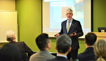 Mr Kurt Tong, Consul General, US Consulate General Hong Kong & Macau, Mrs Tong and Ms Alicia Hernandez, Director, US Agricultural Trade Office in Hong Kong and Macau, visited the School. They enjoyed a US-themed dinner made with American ingredients at Bistro 1979.
