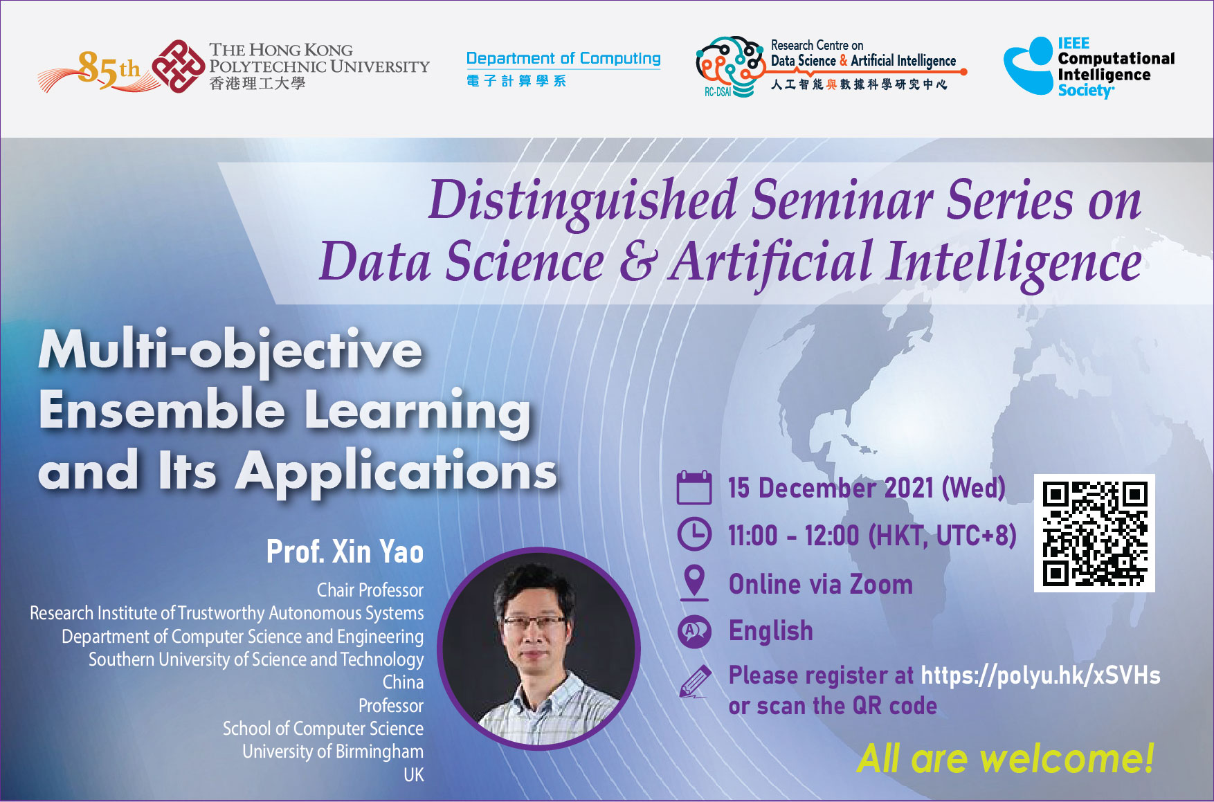 Distinguished Seminar Series on Data Science & Artificial Intelligence – ‘Multi-objective Ensemble Learning and Its Application’ (只有英文版本)
