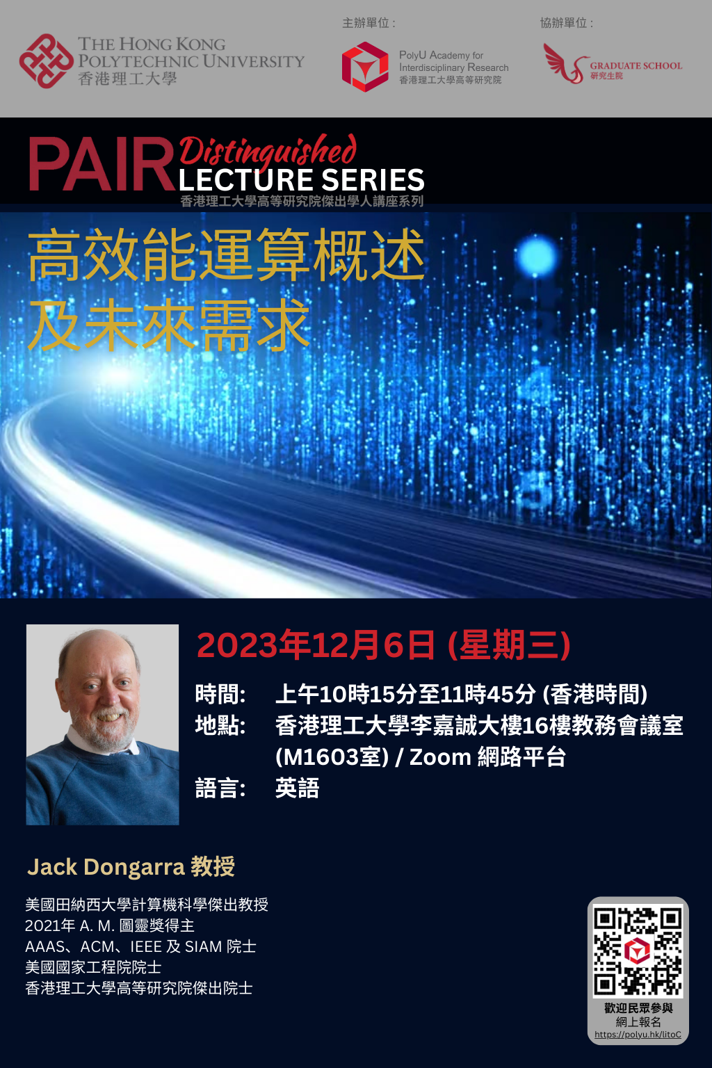 Dongarra 教授現為香港理工大學高等研究院傑出院士。