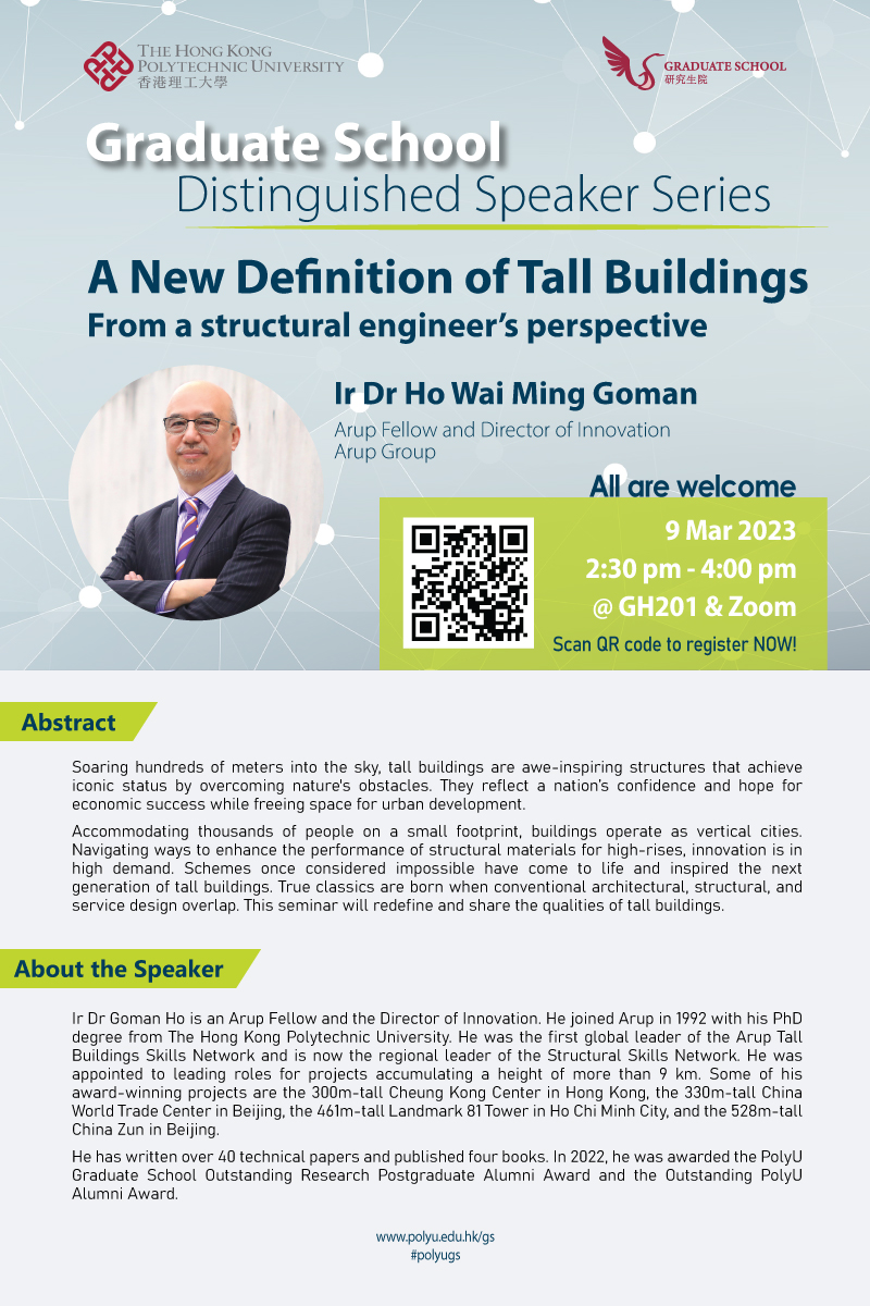 Graduate School Distinguished Speaker Series | A New Definition of Tall Buildings - From a structural engineer's perspective (只有英文版本)