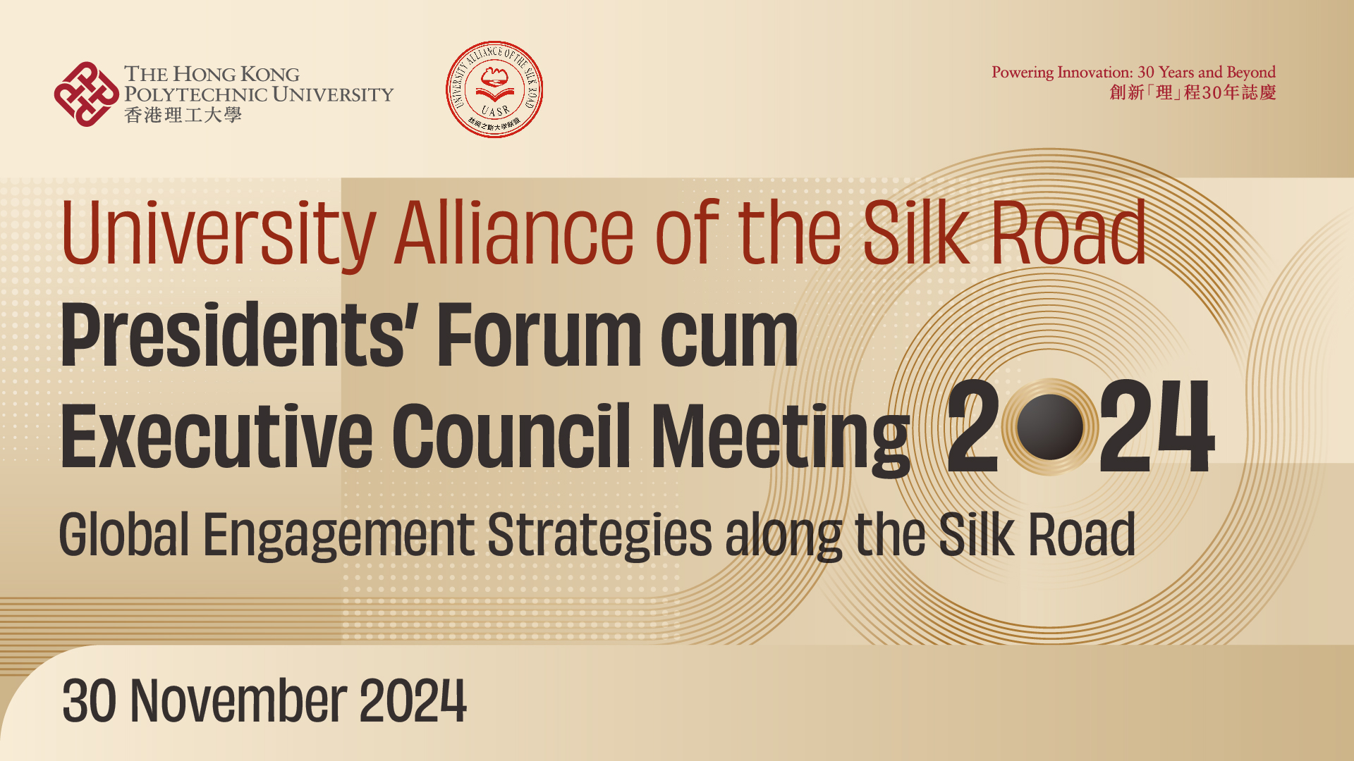 (只有英文版本)As the Rotating President of the University Alliance of the Silk Road (UASR), The Hong Kong Polytechnic University (PolyU) will host the UASR Presidents’ Forum on 30 November 2024 (Saturday) . The Forum, themed “Global Engagement Strategies along the Silk Road”, aims to support the Belt and Road Initiative, synergise resources of education development and talent cultivation, and provide collaborative opportunities in promoting the development of higher education in the Belt and Road region. The event will also be a part of celebratory events commemorating the 30th anniversary of PolyU achieving university status.