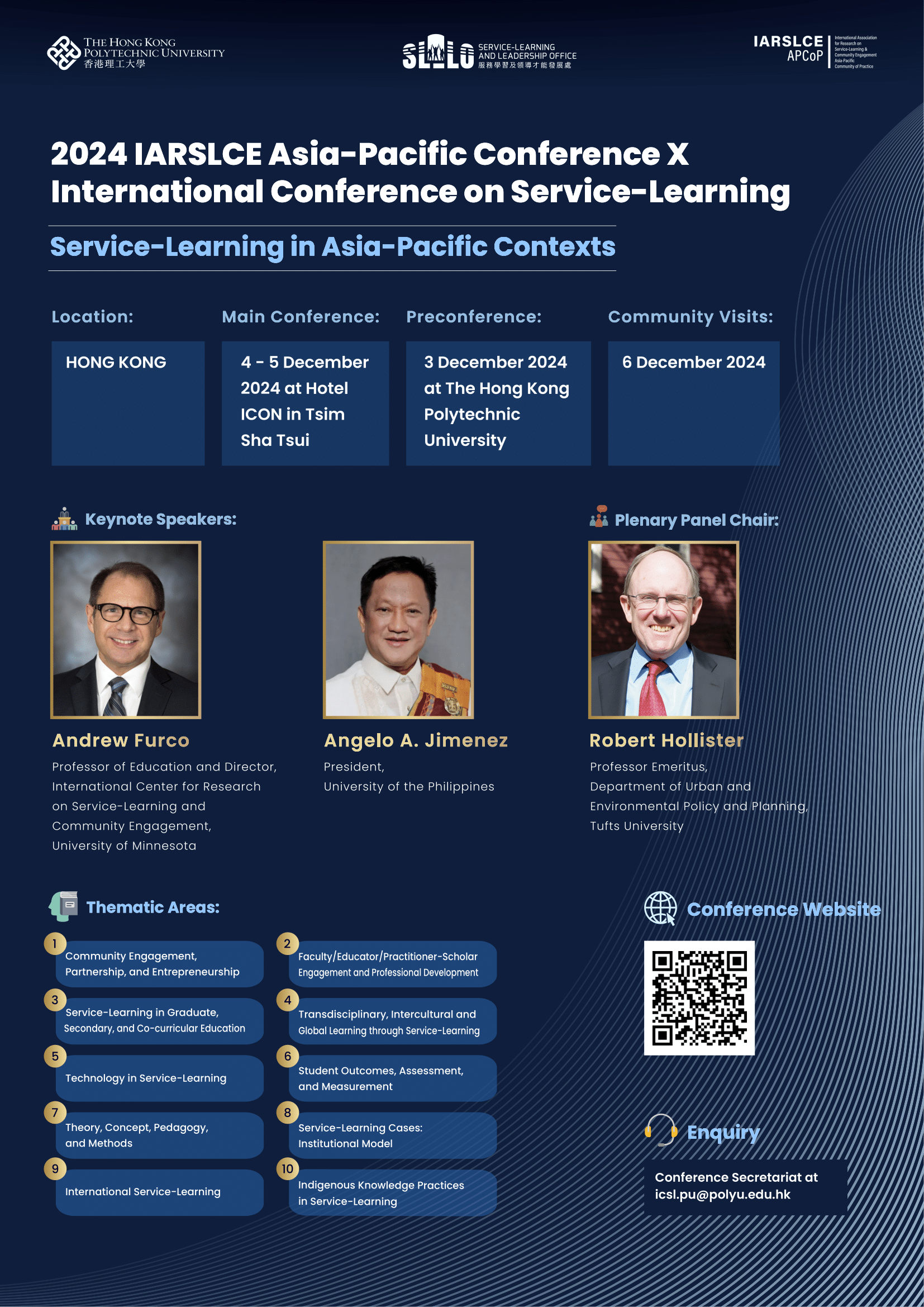 We are excited to announce the 2024 IARSLCE Asia-Pacific Conference (APC) X International Conference on Service-Learning (ICSL) to be hosted in Hong Kong on 3 – 6 December 2024. This event is a collaborative effort by the International Association for Research on Service-Learning and Community Engagement (IARSLCE) Asia-Pacific Community of Practice (APCoP) and the Service-Learning and Leadership Office (SLLO) of The Hong Kong Polytechnic University (PolyU). This event also marks the 1st IARSLCE APC and the 5th ICSL.