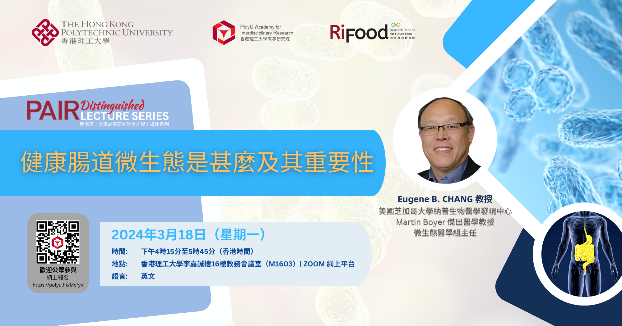 理大高等研究院傑出講座系列: 健康腸道微生態是甚麼及其重要性