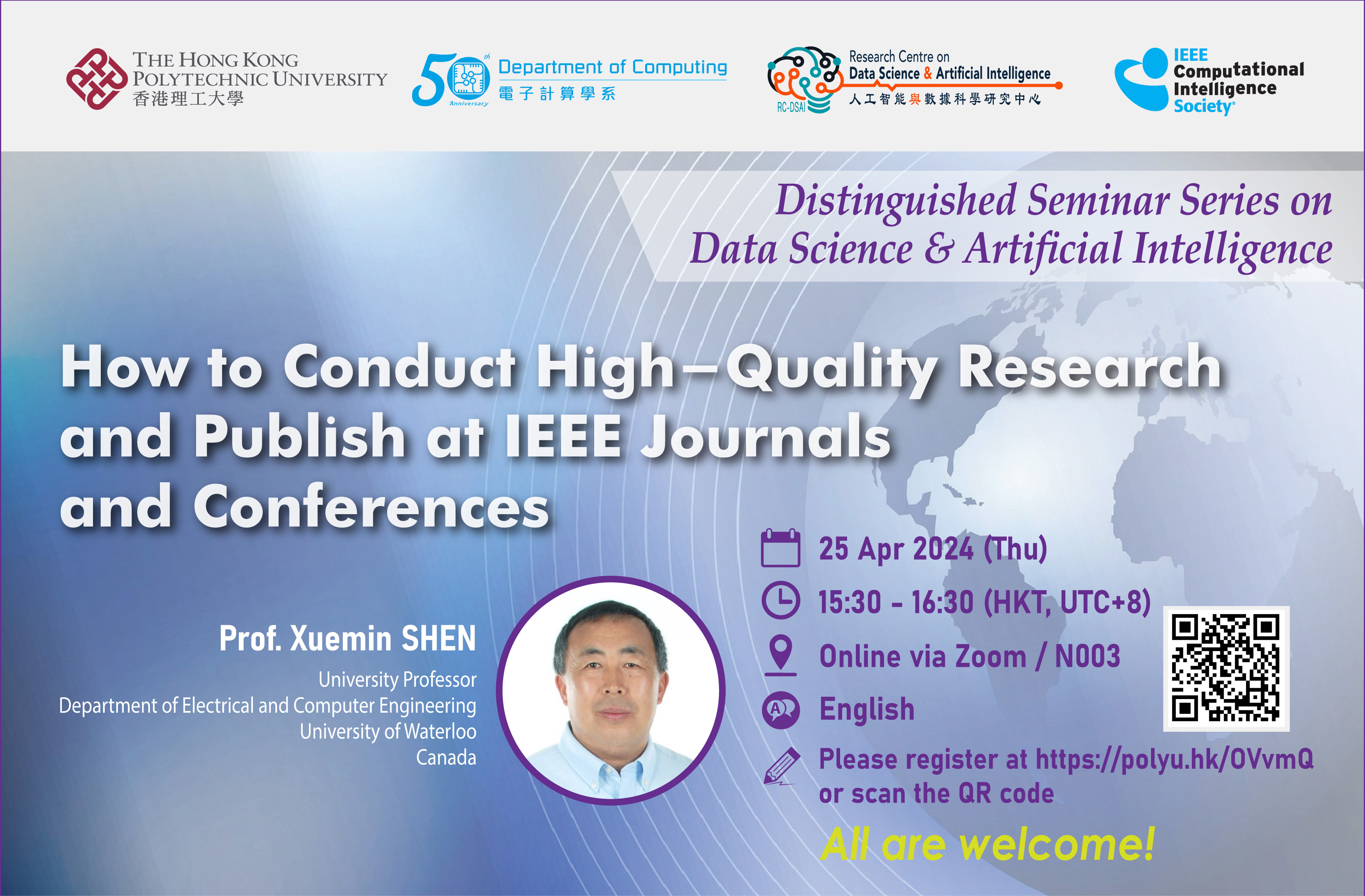 Distinguished Seminar Series on Data Science & Artificial Intelligence – ‘How to Conduct High-Quality Research and Publish at IEEE Journals and Conferences‘ (只有英文版本)