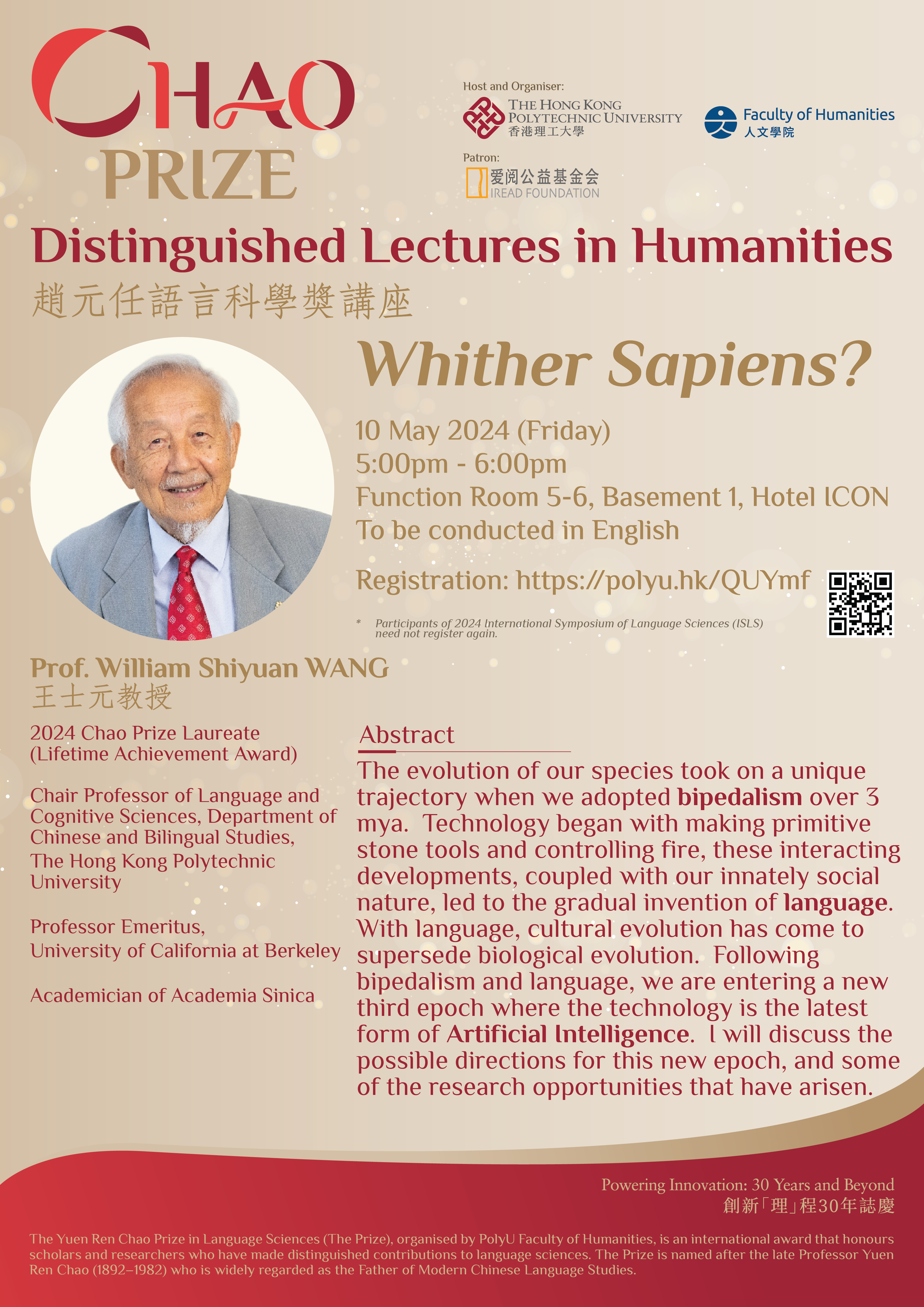 Chao Prize Distinguished Lectures in Humanities: Whither Sapiens?