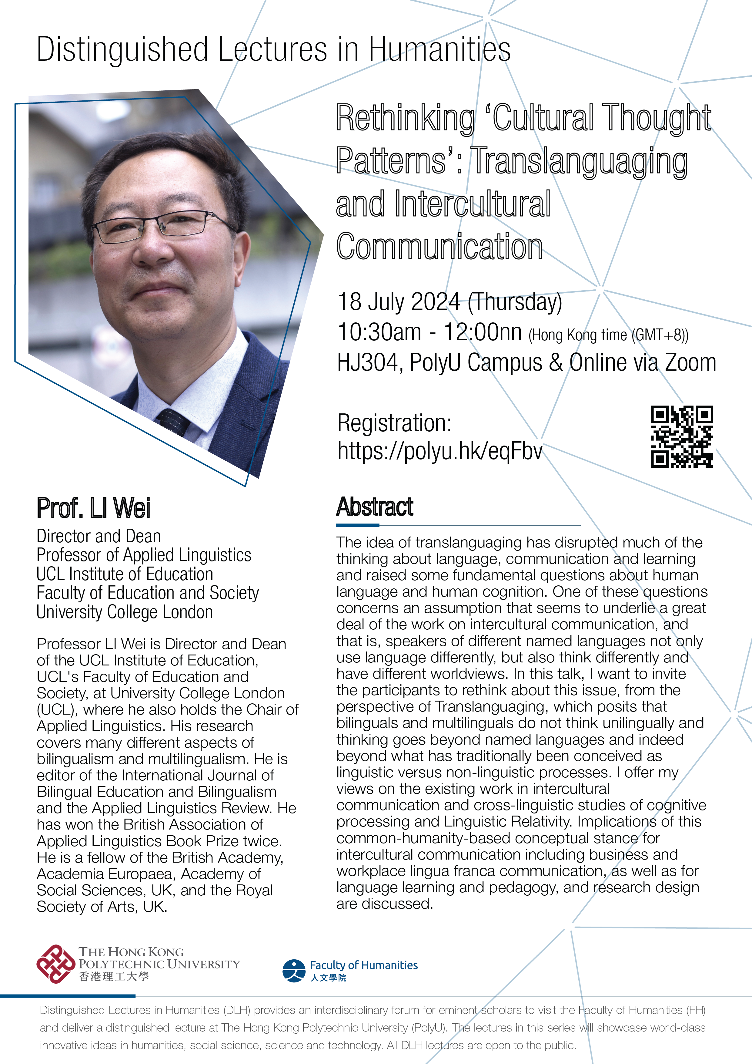 Distinguished Lectures in Humanities: Rethinking ‘Cultural Thought Patterns’: Translanguaging and Intercultural Communication