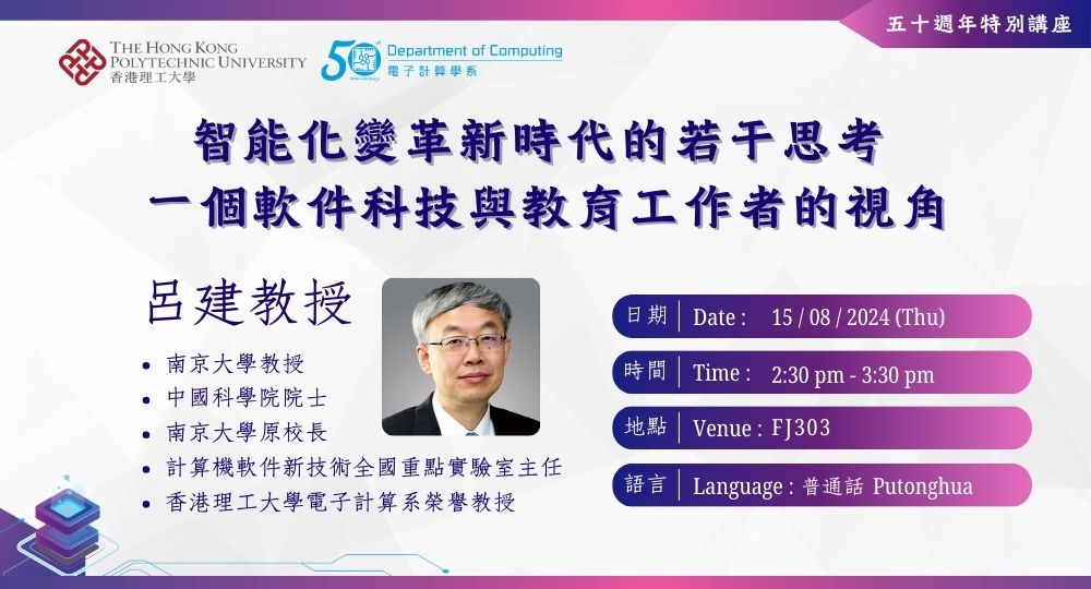 五十週年特別講座 - 呂建教授 - 「智能化變革新時代的若干思考 一個軟件科技與教育工作者的視角」