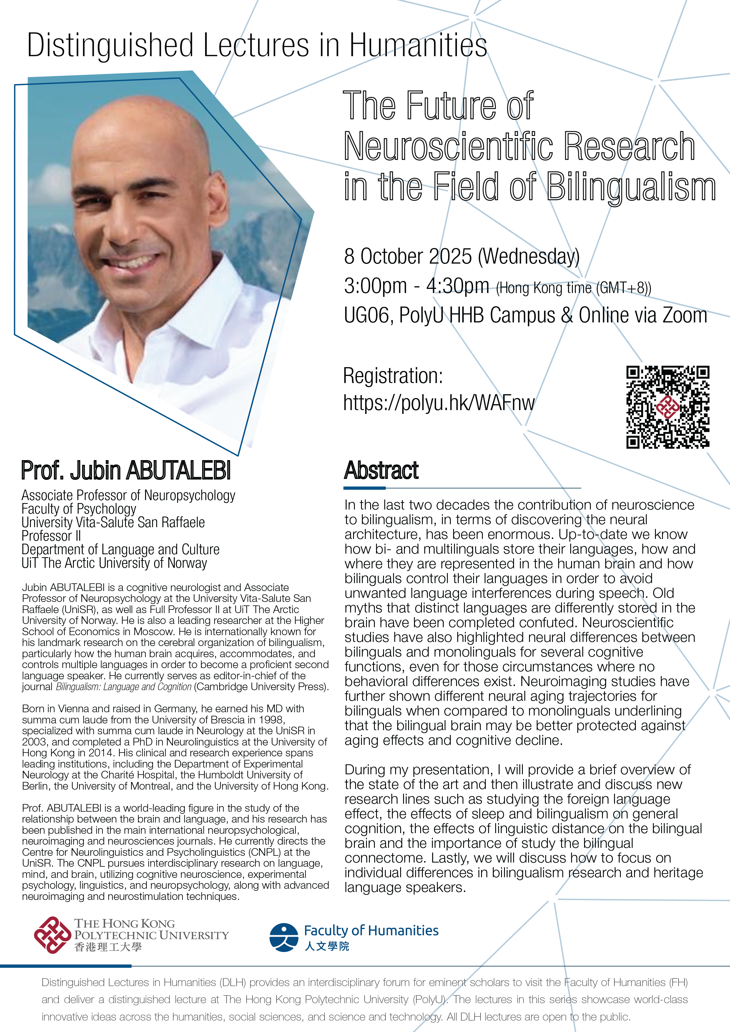 Distinguished Lectures in Humanities: The Future of Neuroscientific Research in the Field of Bilingualism (只有英文版本)
