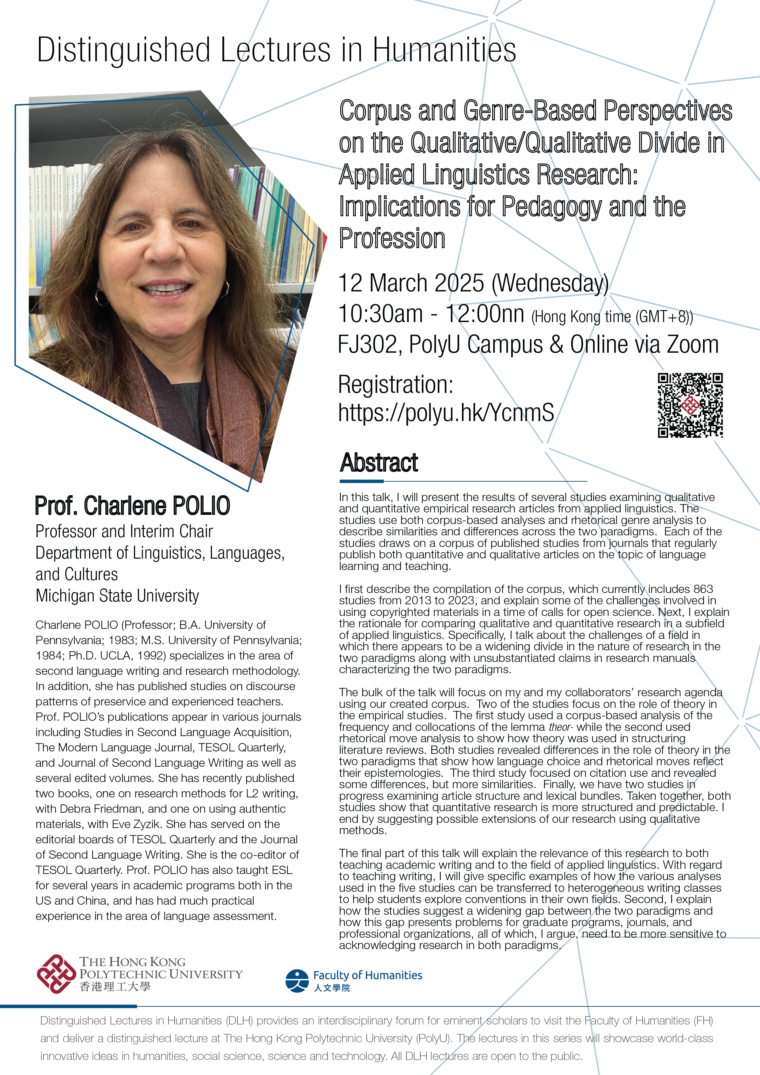 Distinguished Lectures in Humanities - Corpus and Genre-Based Perspectives on the Qualitative/Qualitative Divide in Applied Linguistics Research: Implications for Pedagogy and the Profession