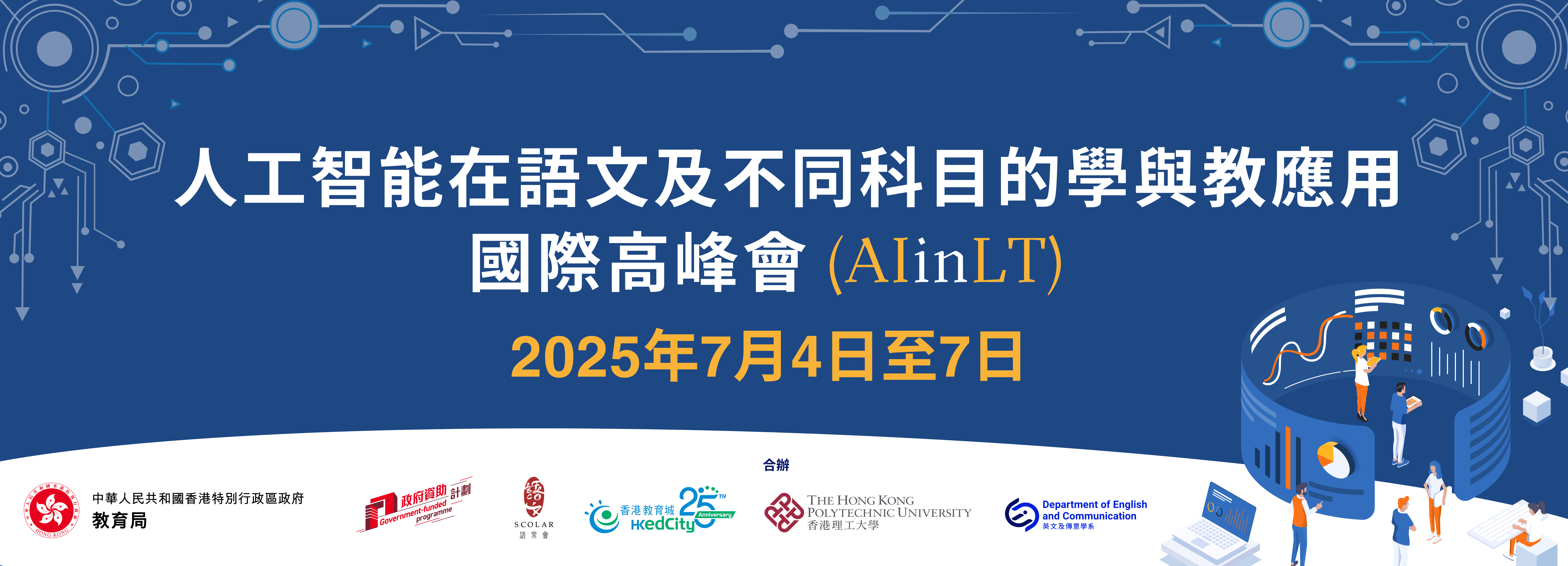 香港理工大學英文及傳意學系,聯同教育局、語文教育及研究常務委員會(語常會)及香港教育城(教城),將隆重舉辦「人工智能在語文及不同科目的學與教應用國際高峰會及會後工作坊系列」(AIinLT)。