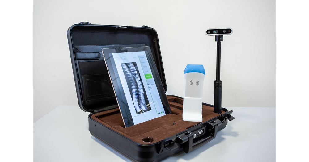 Scolioscan Air由三部分硬件組成:i)一個便攜式無線超聲波探頭,底部安裝有光學標記; ii)一部深度相機;以及iii)一部筆記本或平板電腦。光學標記及深度相機取代了Scolioscan的空間傳感器,儀器的體積憑藉這原創技術得以大幅縮小。