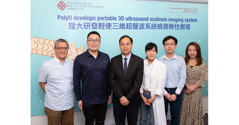香港理工大學(理大)的研究團隊研發了一套便攜式成像系統,有助及早發現青少年的脊柱側彎問題,並頻密監察側彎情況,以便為他們提供適切的治療。這套獨特創新的三維超聲波成像系統名為「Scolioscan Air」,設計輕巧,提供無輻射的脊柱側彎評估,能準確、安全地在學校及社區進行大規模篩查,且符合成本效益。