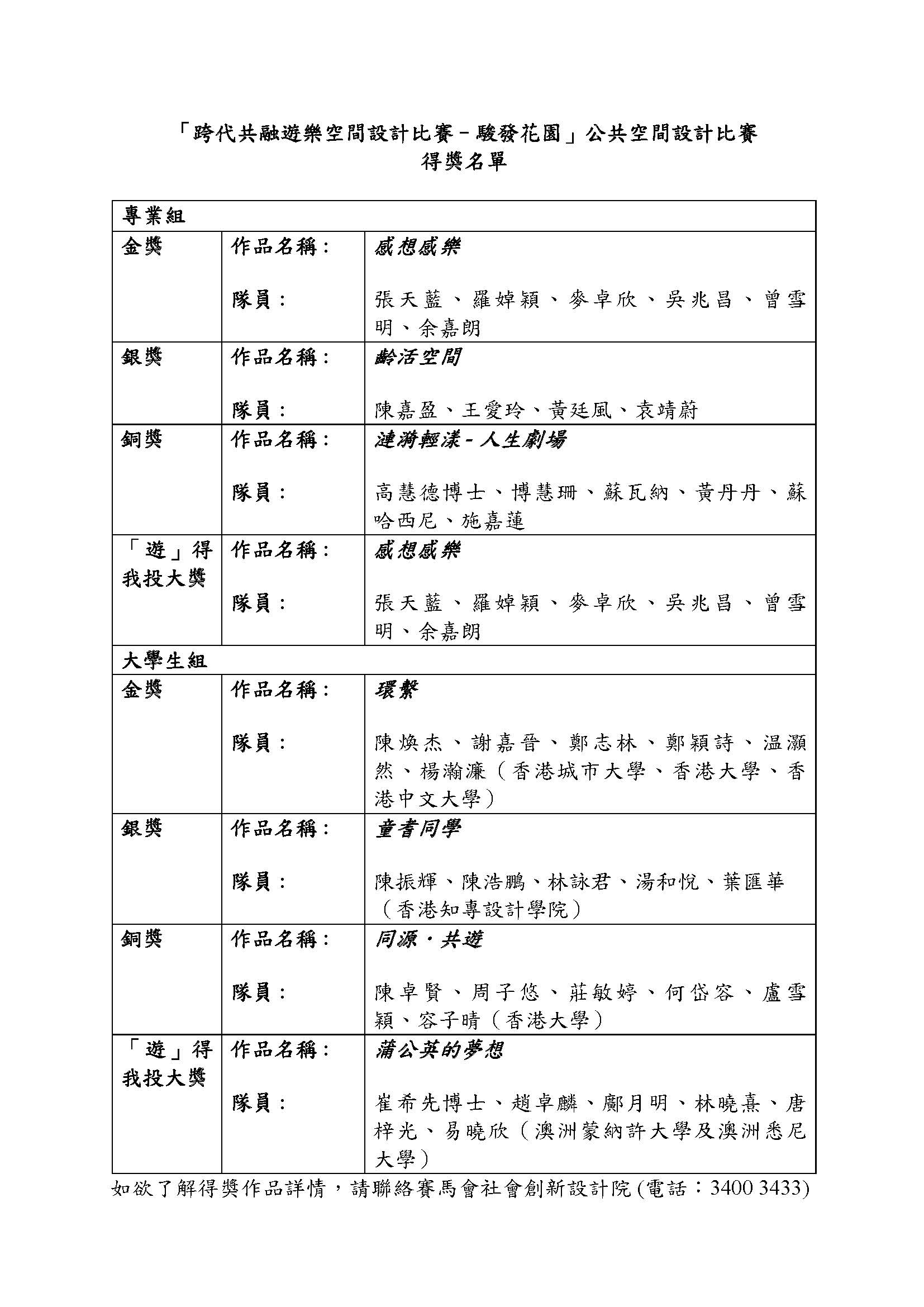 「跨代共融遊樂空間設計比賽 - 駿發花園」得獎作品展現創新思維