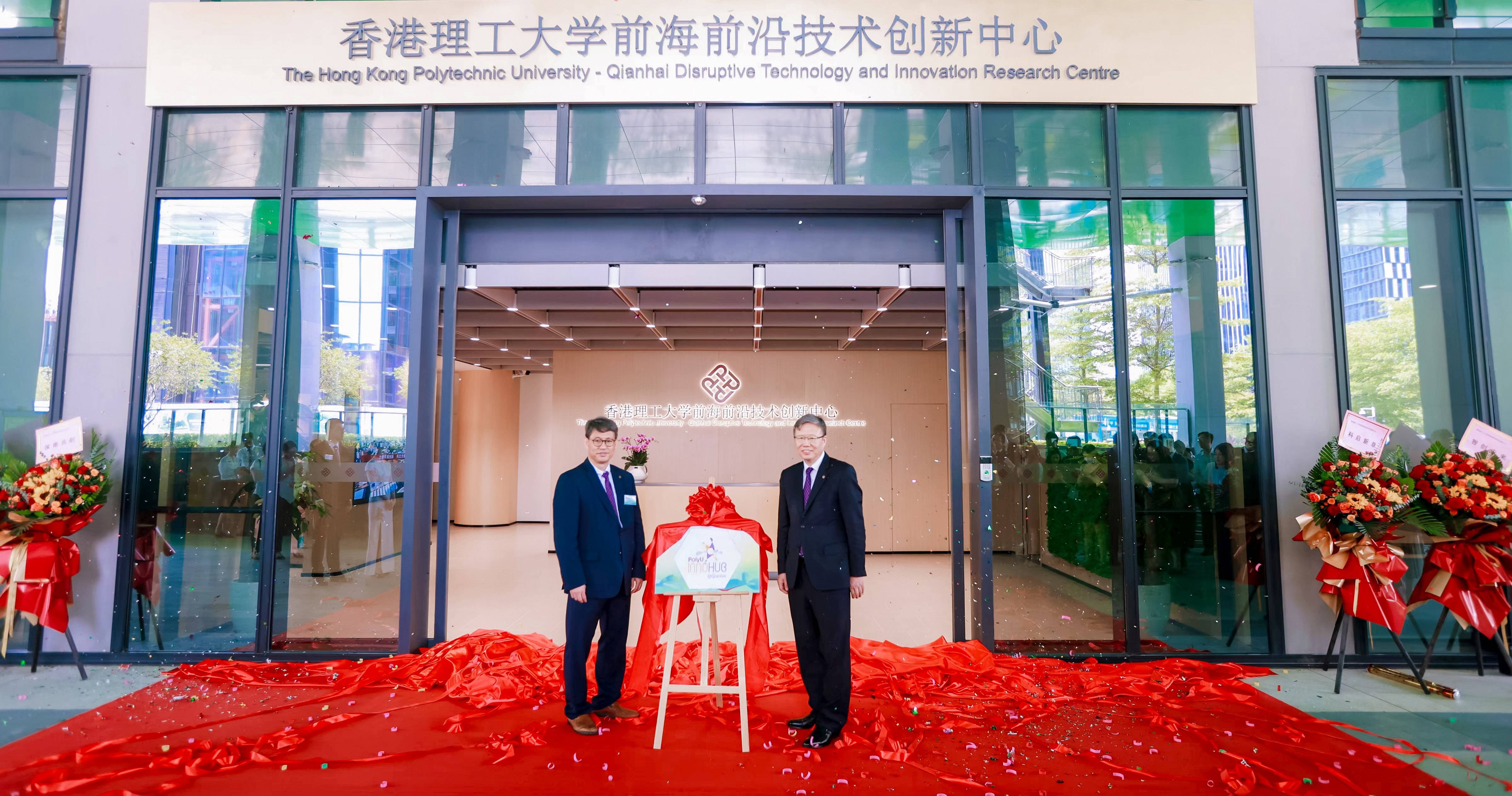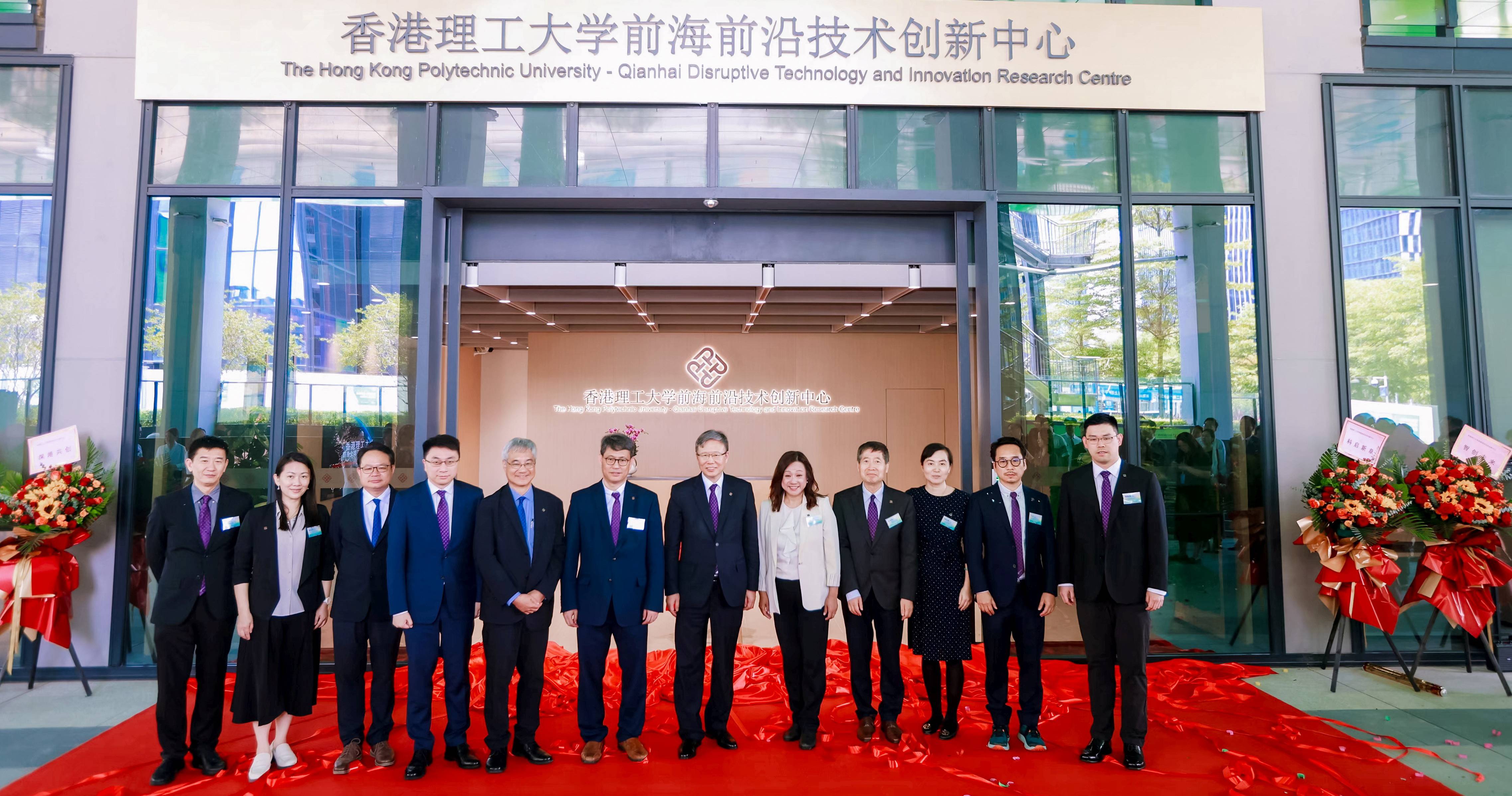 在理大校長滕錦光教授、深圳市委常委、前海深港現代服務業合作區黨工委書記及寶安區委書記王守睿先生、前海深港現代服務業合作區黨工委委員及前海管理局副局長文娉女士、理大副校長(研究及創新)兼科技及創新政策研究中心主任趙汝恒教授,以及一眾嘉賓共同見證下,分別為兩所中心進行揭牌儀式,標誌著兩所中心正式落地前海。